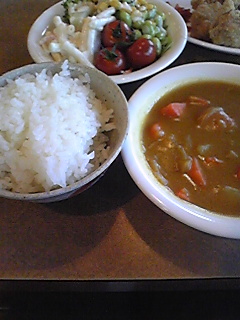 朝からカレー。右上に見える物は幻です☆